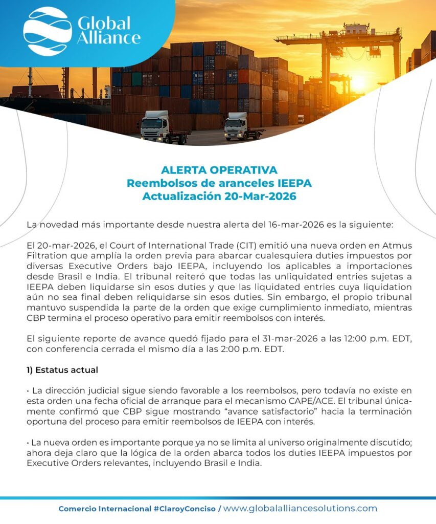 ALERTA OPERATIVA – Reembolsos de Aranceles IEEPA. Actualización 20-03-26